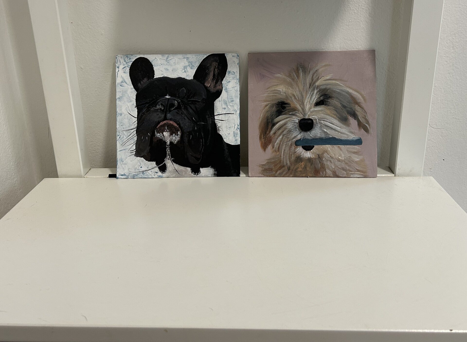 Custom dog portrait paintings made from your photos. Each piece is hand-painted, unique and tailored to capture your pet’s true personality. A meaningful way to honour your furry family member.