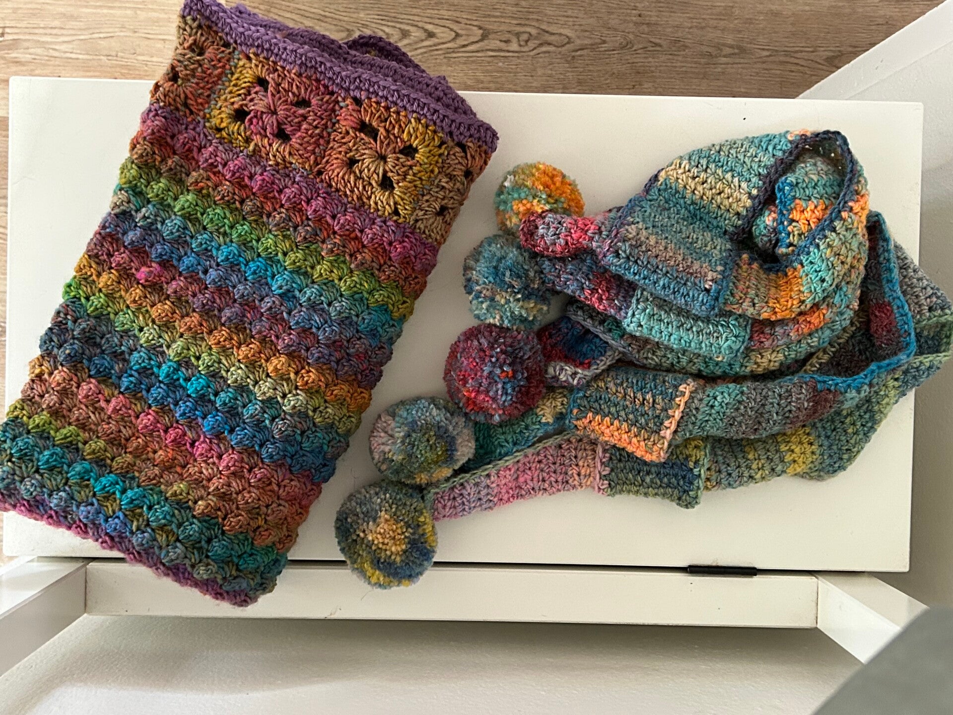 Who can resist a beautiful coloured woollen blanket. We have a range of handknitted and crocheted dog blankets for your dog bed, the car or a picnic at the park/beach to choose from.